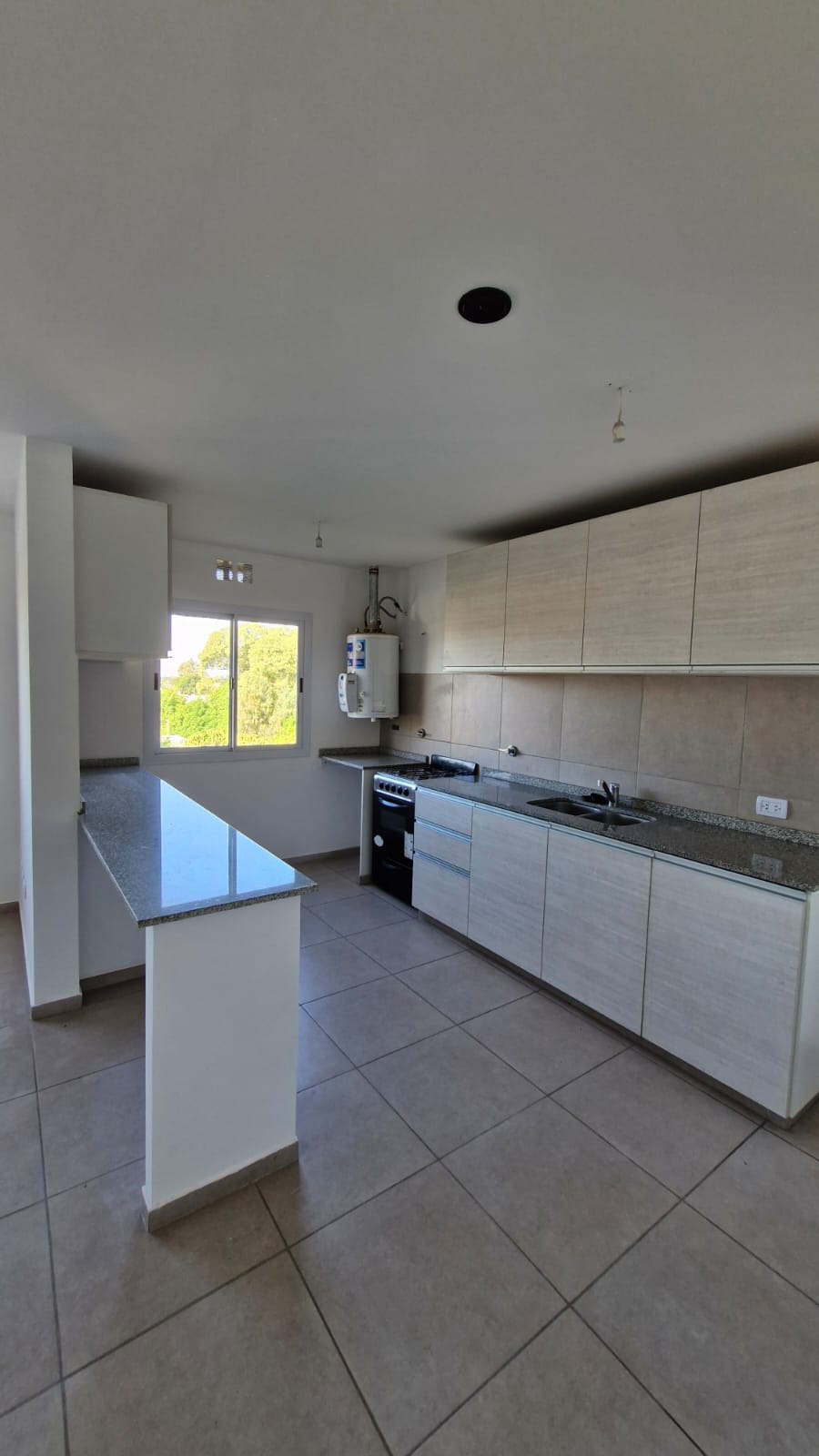 Cocina integrada con bajo mesada y alacena.